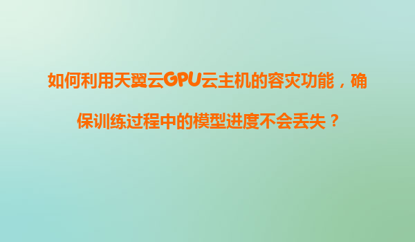 4008-020-360 如何利用天翼云GPU云主機(jī)的容災(zāi)功能確保訓(xùn)練過(guò)程中模型進(jìn)度不丟失 引言 隨著人工智能和深度學(xué)習(xí)技術(shù)的快速發(fā)展,模型訓(xùn)練的規(guī)模和復(fù)雜度日益增加。在長(zhǎng)時(shí)間的訓(xùn)練過(guò)程中,如何確保模型進(jìn)度不會(huì)因?yàn)橛布收稀⒕W(wǎng)...