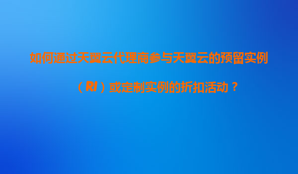 2025-11-05如何通過天翼云代理商參與天翼云的預(yù)留實例(RI)或定制實例的折扣活動? 一、天翼云預(yù)留實例(RI)與定制實例的核心優(yōu)勢 天翼云作為中國電信旗下的云計算服務(wù)品牌,依托國家級網(wǎng)絡(luò)基礎(chǔ)設(shè)施和安全保障能力...