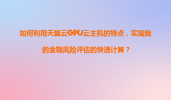 2025-11-05利用天翼云GPU云主機(jī)加速金融風(fēng)險評估 金融風(fēng)險評估通常涉及復(fù)雜的數(shù)學(xué)模型和大規(guī)模數(shù)據(jù)處理,對計算性能和穩(wěn)定性有較高要求。天翼云GPU云主機(jī)憑借其強(qiáng)大的計算能力和靈活的資源配置,為金融風(fēng)險評估的高效執(zhí)行提供...
