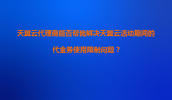 2025-11-05天翼云代理商能否幫我解決天翼云活動(dòng)期間的代金券使用限制問(wèn)題? 一、代金券使用限制的常見(jiàn)情況 在天翼云活動(dòng)期間,用戶可能會(huì)遇到代金券無(wú)法正常使用或存在使用限制的情況,例如: ...