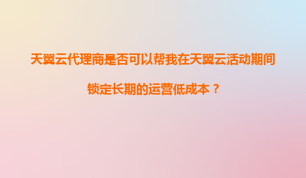 2025-11-05天翼云代理商能否在活動(dòng)期間幫助用戶鎖定長(zhǎng)期低成本運(yùn)營(yíng)? 一、天翼云的核心優(yōu)勢(shì)解析 作為中國(guó)電信旗下的云計(jì)算品牌,天翼云憑借三大核心優(yōu)勢(shì)助力企業(yè)數(shù)字化轉(zhuǎn)型: 1.基礎(chǔ)設(shè)施優(yōu)勢(shì):依托...