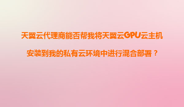 2025-11-05天翼云代理商能否幫助將天翼云GPU云主機(jī)部署至私有云實(shí)現(xiàn)混合架構(gòu)? 一、問(wèn)題解析:混合部署的核心需求 用戶提出的問(wèn)題涉及兩個(gè)關(guān)鍵點(diǎn):一是通過(guò)天翼云代理商渠道實(shí)現(xiàn)服務(wù)落地,二是將公...