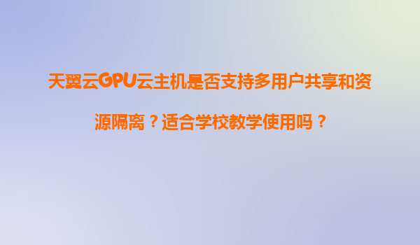 2025-11-05天翼云GPU云主機(jī)是否支持多用戶共享和資源隔離?適合學(xué)校教學(xué)使用嗎? 1.天翼云GPU云主機(jī)的多用戶共享能力 天翼云GPU云主機(jī)基于虛擬化技術(shù),支持多用戶共享同一物理服務(wù)器上的GPU計(jì)算資源。通過虛擬化層(如KVM、D...