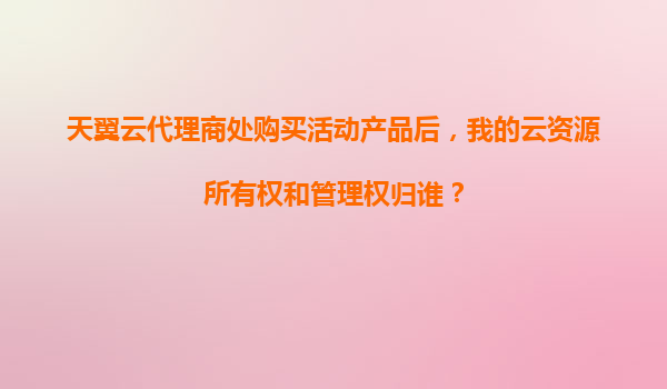 2025-11-04天翼云代理商處購買活動產(chǎn)品后,云資源所有權和管理權解析 一、核心問題:所有權與管理權歸屬 通過天翼云代理商購買活動產(chǎn)品后,用戶最關心的問題莫過于云資源的所有權和管理權歸屬。需明確的是: ...