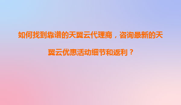 2025-11-03如何找到靠譜的天翼云代理商,獲取最新優(yōu)惠活動細節(jié)和返利政策 一、天翼云的市場優(yōu)勢解析 作為中國電信旗下的云計算品牌,天翼云憑借以下核心優(yōu)勢成為企業(yè)數(shù)字化轉(zhuǎn)型的重要選擇: 央企背景保障安全:通過國家...