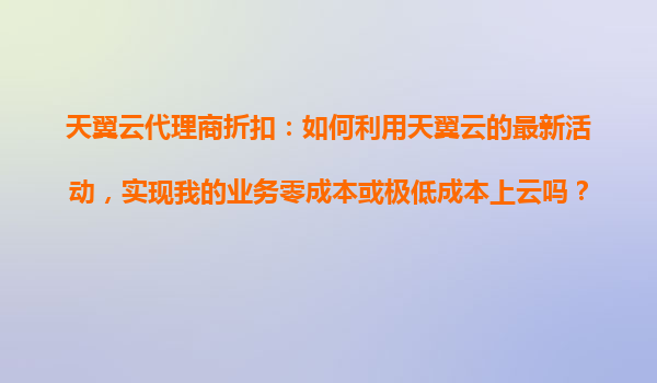 2025-11-03如何利用天翼云代理商折扣實現(xiàn)業(yè)務(wù)低成本上云 一、天翼云代理商折扣的核心優(yōu)勢 天翼云作為中國電信旗下的云計算品牌,依托運營商級基礎(chǔ)設(shè)施和全國覆蓋的網(wǎng)絡(luò)資源,為企業(yè)提供高性價比的上云方案。通過官方...