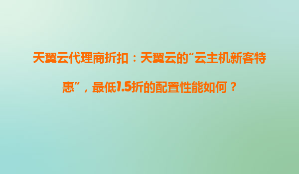 2025-11-01天翼云代理商折扣:“云主機新客特惠”1.5折配置性能解析 一、天翼云“云主機新客特惠”活動概述 天翼云推出的“云主機新客特惠”活動,通過代理商渠道可享受最低至1.5折的折扣優(yōu)惠。該活...