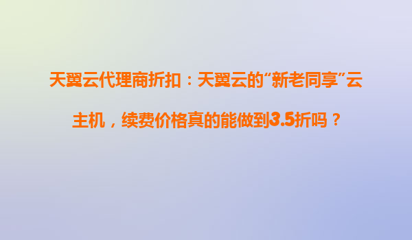 2025-10-31天翼云代理商折扣:天翼云“新老同享”云主機(jī),續(xù)費(fèi)價(jià)格真的能做到3.5折嗎? 引言 隨著云計(jì)算市場(chǎng)的快速發(fā)展,越來(lái)越多的企業(yè)開始關(guān)注云服務(wù)的性價(jià)比。天翼云作為中國(guó)電信旗下的云計(jì)算品牌,憑借其強(qiáng)...