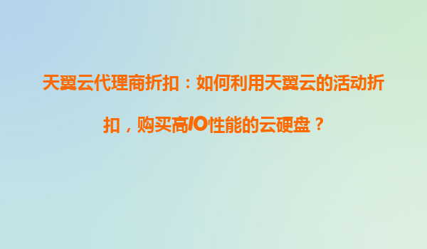 2025-10-31天翼云代理商折扣:如何利用天翼云的活動(dòng)折扣,購(gòu)買高IO性能的云硬盤? 一、天翼云的優(yōu)勢(shì)與高IO性能云硬盤的價(jià)值 天翼云作為中國(guó)電信旗下的云計(jì)算服務(wù)商,憑借豐富的網(wǎng)絡(luò)資源和穩(wěn)定的基礎(chǔ)設(shè)施,在云存儲(chǔ)領(lǐng)...