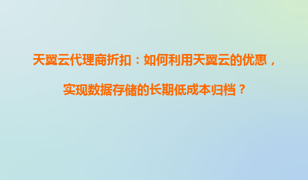 2025-10-31天翼云代理商折扣:實(shí)現(xiàn)長(zhǎng)期低成本數(shù)據(jù)歸檔的智能選擇 為什么選擇天翼云進(jìn)行數(shù)據(jù)歸檔 天翼云作為中國(guó)電信旗下的云計(jì)算品牌,憑借其強(qiáng)大的基礎(chǔ)設(shè)施和穩(wěn)定的服務(wù),成為企業(yè)數(shù)據(jù)長(zhǎng)期歸檔的理...