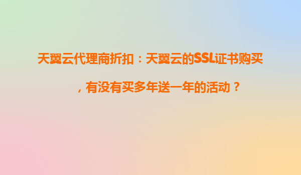 2025-10-31天翼云代理商折扣全解析:SSL證書(shū)多年購(gòu)買(mǎi)贈(zèng)送一年活動(dòng)及天翼云核心優(yōu)勢(shì) 一、天翼云SSL證書(shū)優(yōu)惠活動(dòng)現(xiàn)狀 針對(duì)用戶關(guān)心的"天翼云SSL證書(shū)是否有買(mǎi)多年送一年活動(dòng)"問(wèn)題,目前官方公布的促銷政策顯示: 標(biāo)準(zhǔn)套餐:通...