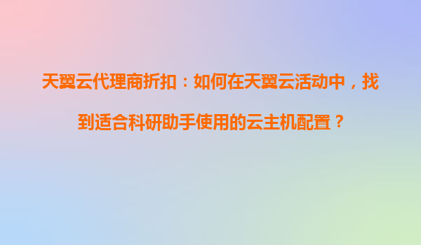 2025-10-31天翼云代理商折扣:科研助手云端配置指南 一、天翼云的核心優(yōu)勢(shì) 科研項(xiàng)目對(duì)云計(jì)算的要求往往兼顧性能、穩(wěn)定性與成本效益,天翼云憑借以下優(yōu)勢(shì)成為理想選擇: 國(guó)資背景保障:中...