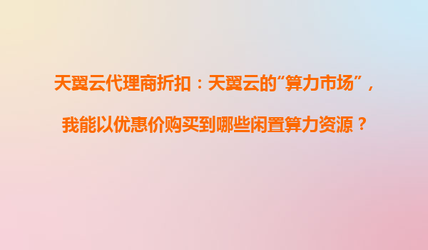 2025-10-31天翼云代理商折扣:如何通過(guò)“算力市場(chǎng)”優(yōu)惠獲取閑置算力資源? 隨著數(shù)字化轉(zhuǎn)型的加速,企業(yè)和個(gè)人對(duì)云計(jì)算資源的需求日益增長(zhǎng)。面對(duì)算力需求波動(dòng)大、資源利用率不均衡的問(wèn)題,天翼云推出的“算力市場(chǎng)”為企...