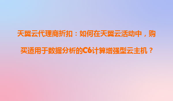 2025-10-29天翼云代理商折扣:如何高效購(gòu)買適用于數(shù)據(jù)分析的C6計(jì)算增強(qiáng)型云主機(jī)? 一、天翼云的優(yōu)勢(shì)與C6云主機(jī)適用場(chǎng)景 作為中國(guó)電信旗下的云計(jì)算服務(wù)品牌,天翼云憑借以下核心優(yōu)勢(shì)為數(shù)據(jù)分析場(chǎng)景提供可靠支持: 運(yùn)營(yíng)商級(jí)...
