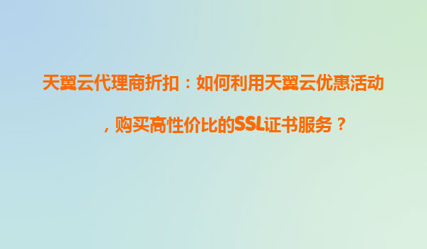2025-10-29天翼云代理商折扣:如何利用天翼云優(yōu)惠活動(dòng),購(gòu)買高性價(jià)比SSL證書服務(wù) 天翼云代理商政策的優(yōu)勢(shì) 通過(guò)天翼云代理商政策,企業(yè)用戶可以享受額外的折扣優(yōu)惠。天翼云代理商不僅提供官方定價(jià)基礎(chǔ)上...