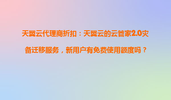 2025-10-28天翼云代理商折扣:云管家2.0災備遷移服務新用戶免費額度解析 一、天翼云與云管家2.0的災備遷移服務 隨著數字化轉型的加速,企業(yè)對數據安全和業(yè)務連續(xù)性的需求日益增長。天翼云作為中國電信旗下的...