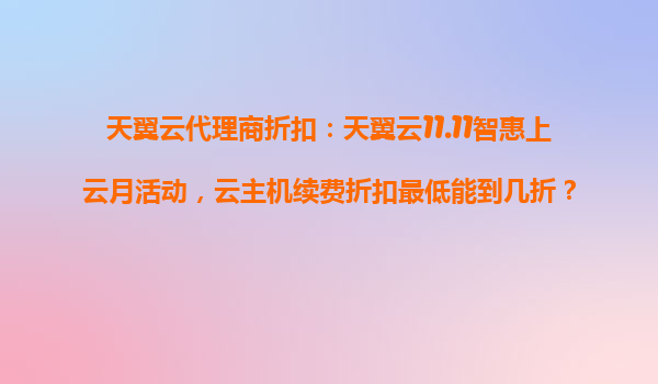 2025-10-28天翼云11.11智惠上云月活動:云主機續(xù)費折扣深度解析 活動亮點:云主機續(xù)費折扣低至5折 在今年的天翼云11.11智惠上云月活動中,云主機續(xù)費折扣力度空前,通過代理商渠道最低可享受5折優(yōu)惠!此舉不僅大...