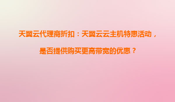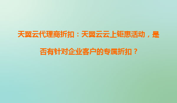 2025-10-26天翼云代理商折扣:發(fā)掘企業(yè)專屬優(yōu)惠的云上鉅惠活動 一、天翼云代理商折扣的核心價值 天翼云作為中國電信旗下的云計算服務(wù)品牌,憑借其央企背景和強大的基礎(chǔ)設(shè)施資源,為企業(yè)客戶提供穩(wěn)定、安全、...