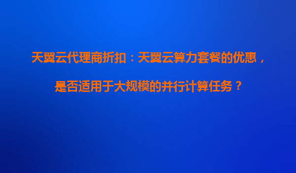 2025-10-25天翼云代理商折扣:天翼云算力套餐是否適用于大規(guī)模并行計算任務(wù)? 引言 隨著云計算技術(shù)的快速發(fā)展,越來越多的企業(yè)和研究機構(gòu)開始依賴云計算資源來處理大規(guī)模并行計算任務(wù)。天翼云作為國內(nèi)領(lǐng)先的云服務(wù)提...
