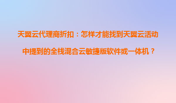 2025-10-26如何通過天翼云代理商獲取全棧混合云敏捷版軟件或一體機折扣? 一、天翼云全棧混合云敏捷版的優(yōu)勢 天翼云全棧混合云敏捷版是天翼云面向企業(yè)數(shù)字化轉(zhuǎn)型推出的高效解決方案,具備以下核心優(yōu)勢:...