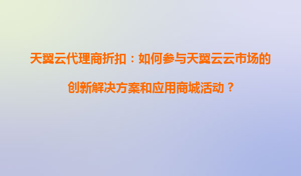 2025-10-24天翼云代理商折扣:如何參與天翼云云市場的創(chuàng)新解決方案和應(yīng)用商城活動? 一、天翼云的優(yōu)勢 天翼云憑借強大的技術(shù)實力、豐富的產(chǎn)品線和可靠的安全保障,已成為中國云計算市場的領(lǐng)先提供商之一。以下是天翼...