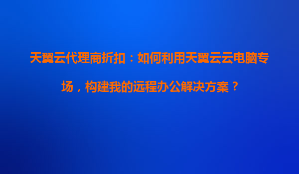 4008-020-360 天翼云代理商折扣:如何利用天翼云云電腦專場,構(gòu)建我的遠(yuǎn)程辦公解決方案? 引言 隨著數(shù)字化辦公的普及,遠(yuǎn)程辦公正在成為越來越多企業(yè)的剛需。而天翼云作為中國電信旗下的云計算品牌,憑借安全可靠的云服務(wù)能...