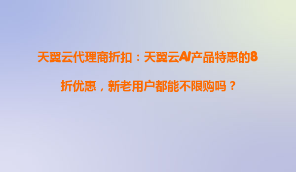 2025-10-24天翼云AI產(chǎn)品限時8折特惠新老用戶尊享不限購專屬福利 在數(shù)字化浪潮席卷全球的今天,云計算已成為企業(yè)轉(zhuǎn)型的核心引擎。作為中國領(lǐng)先的云服務(wù)提供商,天翼云憑借其強大的技術(shù)實力和豐富的行業(yè)經(jīng)驗,持續(xù)為企業(yè)和...