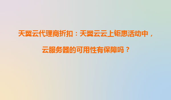 2025-10-23天翼云代理商折扣:天翼云云上鉅惠活動中云服務(wù)器的可用性保障分析 一、天翼云云服務(wù)器可用性的核心保障 在天翼云“云上鉅惠”活動中,云服務(wù)器的可用性是用戶最關(guān)心的核心問題之一。天翼云通過多重技術(shù)手...