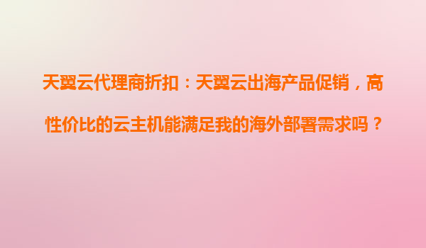 2025-10-23天翼云出海產(chǎn)品促銷:高性價比云主機助力企業(yè)海外部署 隨著全球化進程加速,越來越多企業(yè)將業(yè)務拓展至海外市場。面對海外復雜的IT基礎設施環(huán)境,如何選擇穩(wěn)定可靠的云計算服務成為關鍵。天翼云作為中國電信旗下云服...