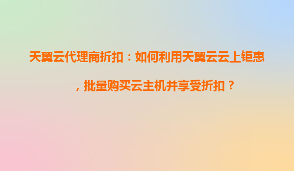 2025-10-23天翼云代理商折扣:如何利用云上鉅惠批量購(gòu)買(mǎi)云主機(jī) 一、天翼云代理商折扣政策解析 天翼云為代理商提供階梯式折扣政策,采購(gòu)量越大,享受的折扣力度越高。通過(guò)成為天翼云認(rèn)證代理商,企業(yè)可獲專(zhuān)屬客戶(hù)經(jīng)理支持...