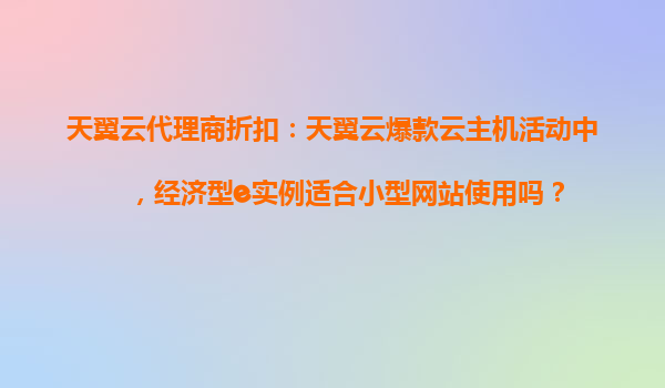 2025-10-22天翼云代理商折扣:經(jīng)濟(jì)型e實(shí)例是否適合小型網(wǎng)站使用? 一、天翼云經(jīng)濟(jì)型e實(shí)例的核心優(yōu)勢(shì) 在天翼云爆款云主機(jī)活動(dòng)中,經(jīng)濟(jì)型e實(shí)例憑借以下特點(diǎn)成為小型網(wǎng)站的優(yōu)選: 高性...