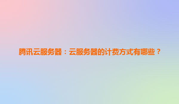 騰訊云服務(wù)器的多樣化計費(fèi)方式