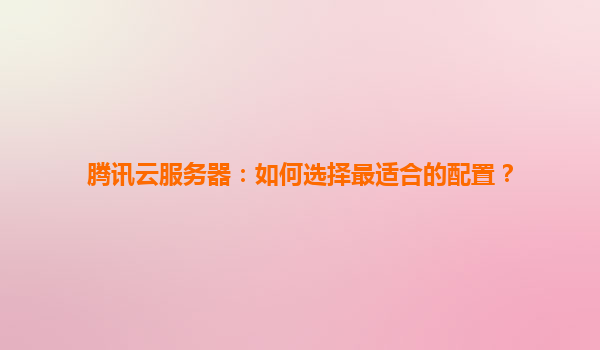 騰訊云服務(wù)器:如何選擇最適合的配置?
