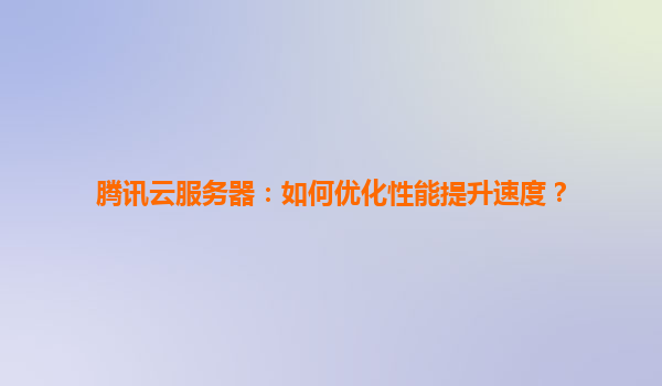 騰訊云服務(wù)器性能優(yōu)化指南:如何通過(guò)技術(shù)與服務(wù)提升速度