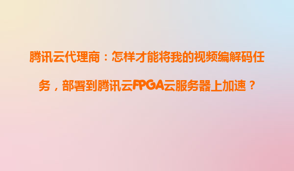 騰訊云FPGA云服務(wù)器:加速視頻編解碼任務(wù)的理想之選