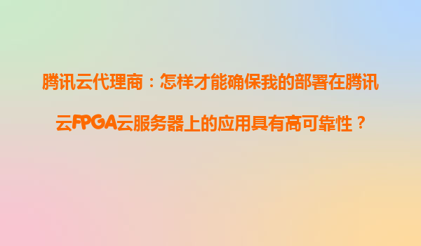 騰訊云代理商指南:確保騰訊云FPGA云服務(wù)器應(yīng)用高可靠性的最佳實(shí)踐