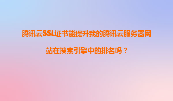 2025-11-15騰訊云SSL證書能提升我的騰訊云服務器網(wǎng)站在搜索引擎中的排名嗎? 一、搜索引擎排名的影響因素 在探討騰訊云SSL證書對搜索引擎排名的影響之前,我們首先需要了解搜索引擎排名的主要影響因素。搜索引擎(如百度、Goo...