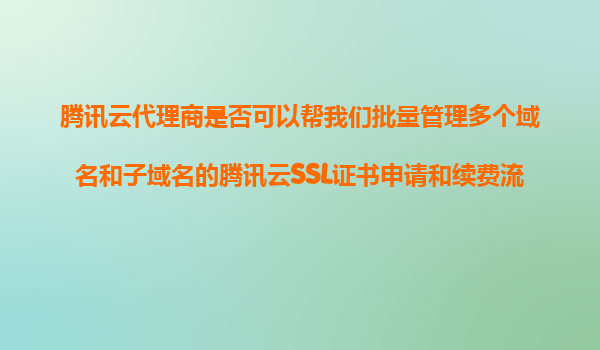 2025-11-08騰訊云代理商如何高效管理多域名與子域名的SSL證書(shū)申請(qǐng)與續(xù)費(fèi)? 一、騰訊云代理商的SSL證書(shū)管理核心價(jià)值 騰訊云認(rèn)證代理商作為專業(yè)技術(shù)服務(wù)商,能夠?yàn)槠髽I(yè)用戶提供批量域名及子域名的SSL證書(shū)全生命周期管理...