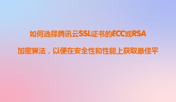 2025-11-08如何選擇騰訊云SSL證書(shū)的ECC或RSA加密算法:安全性與性能的最佳平衡 一、ECC與RSA加密算法的核心差異 騰訊云SSL證書(shū)支持的ECC(橢圓曲線加密)和RSA(非對(duì)稱加密)是兩種主流算法,其差異直接影響安全性和...