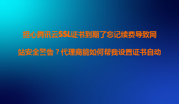 2025-11-08擔心騰訊云SSL證書到期忘記續(xù)費?代理商助您實現(xiàn)自動續(xù)期與提醒 一、SSL證書到期未續(xù)費的潛在風險 SSL證書是保障網(wǎng)站數(shù)據(jù)傳輸安全的核心組件。若因疏忽導致證書過期未續(xù)費,將帶來以下嚴重后果: 瀏覽器安全警告...