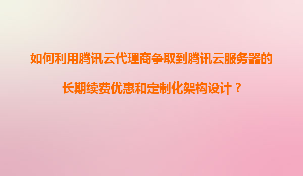 2025-11-05如何利用騰訊云代理商爭取到騰訊云服務(wù)器的長期續(xù)費(fèi)優(yōu)惠和定制化架構(gòu)設(shè)計(jì)? 引言 在數(shù)字化轉(zhuǎn)型的大背景下,云計(jì)算已成為企業(yè)IT基礎(chǔ)設(shè)施的重要組成部分。騰訊云作為國內(nèi)領(lǐng)先的云服務(wù)提供商...