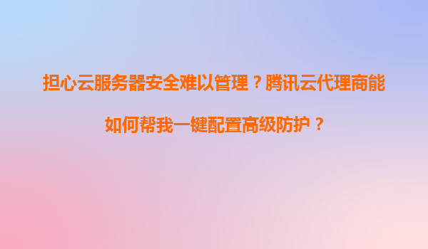 2025-11-05擔(dān)心云服務(wù)器安全難以管理?騰訊云代理商能如何幫我一鍵配置高級防護(hù)? 一、云服務(wù)器安全管理的痛點(diǎn) 隨著企業(yè)上云步伐的加快,云服務(wù)器(CVM)的安全管理逐漸成為用戶的核心關(guān)注點(diǎn)。許多企業(yè)或開發(fā)者面...