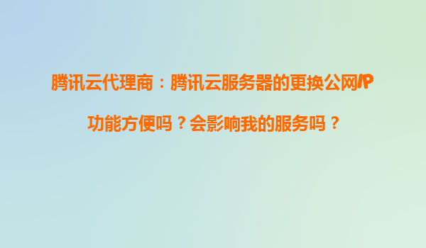2025-11-03騰訊云代理商:騰訊云服務(wù)器的更換公網(wǎng)IP功能方便嗎?會影響我的服務(wù)嗎? 引言 在云計算時代,靈活高效的運維能力是企業(yè)上云的核心需求之一。作為國內(nèi)領(lǐng)先的云服務(wù)提供...