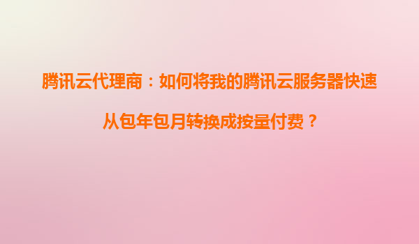 2025-11-02騰訊云代理商指南:快速將騰訊云服務(wù)器從包年包月轉(zhuǎn)換成按量付費(fèi) 一、騰訊云計(jì)費(fèi)模式簡介 騰訊云提供兩種主要的計(jì)費(fèi)模式供用戶選擇: 包年包月(預(yù)付費(fèi)):適合長期穩(wěn)定使用的業(yè)務(wù)場景,價(jià)格更優(yōu)惠,但...