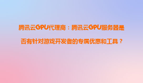2025-10-29騰訊云GPU代理商:騰訊云GPU服務(wù)器是否有針對(duì)游戲開發(fā)者的專屬優(yōu)惠和工具? 一、騰訊云GPU服務(wù)器的核心優(yōu)勢(shì) 騰訊云作為國內(nèi)領(lǐng)先的云計(jì)算服務(wù)商,其GPU服務(wù)器憑借高性能計(jì)算能力...