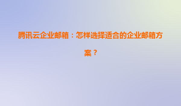 騰訊云企業郵箱:如何選擇最適合的企業郵箱方案?