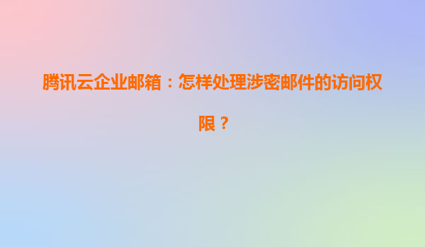 騰訊云企業郵箱:如何高效管理涉密郵件的訪問權限?