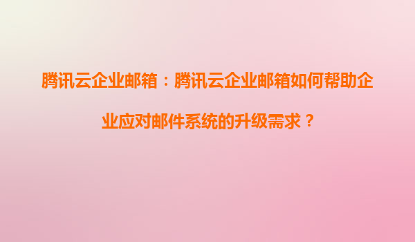騰訊云企業郵箱:助力企業高效應對郵件系統升級需求