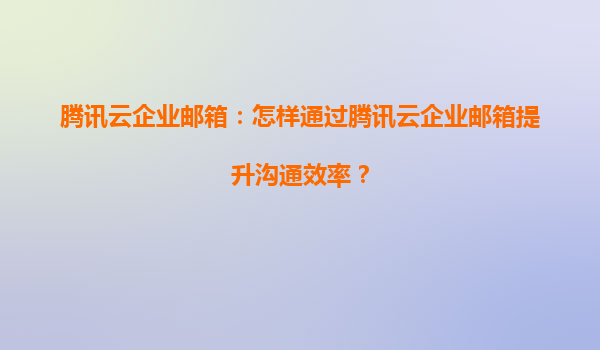 騰訊云企業郵箱:智能化工具助力企業高效溝通
