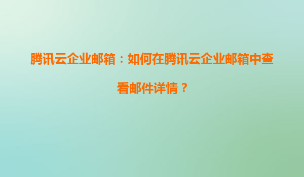 騰訊云企業郵箱:如何在騰訊云企業郵箱中查看郵件詳情?
